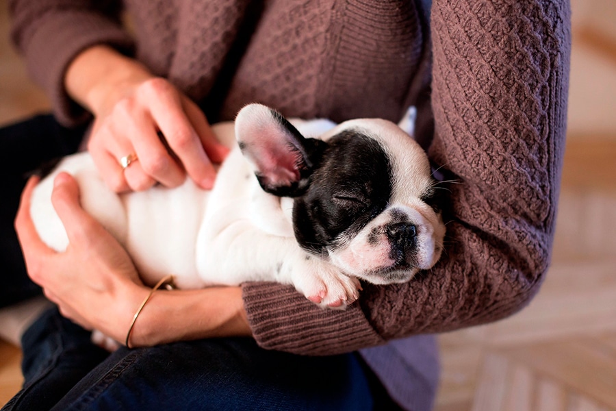 En estos casos, los consejos para dormir a nuestro perro pasan por tener paciencia. Al contrario de lo que se había recomendado hasta ahora, los cachorros pueden dormir en nuestros brazos o, al menos, en nuestra compañía. No hay problema en acariciarlos y acompañarlos hasta que se queden dormidos o poner su cama en nuestro cuarto.