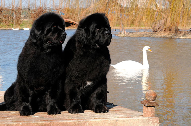 Cabeza grande, ancha y compacta, talla grande y pelaje abundante convierten al Terranova en una de las razas de perros más fuertes e impresionantes. Además, destacan por su buen carácter y su tolerancia con los niños. Son grandes, llegando casi a los 70 kg de peso y superando los 71 cm de altura.